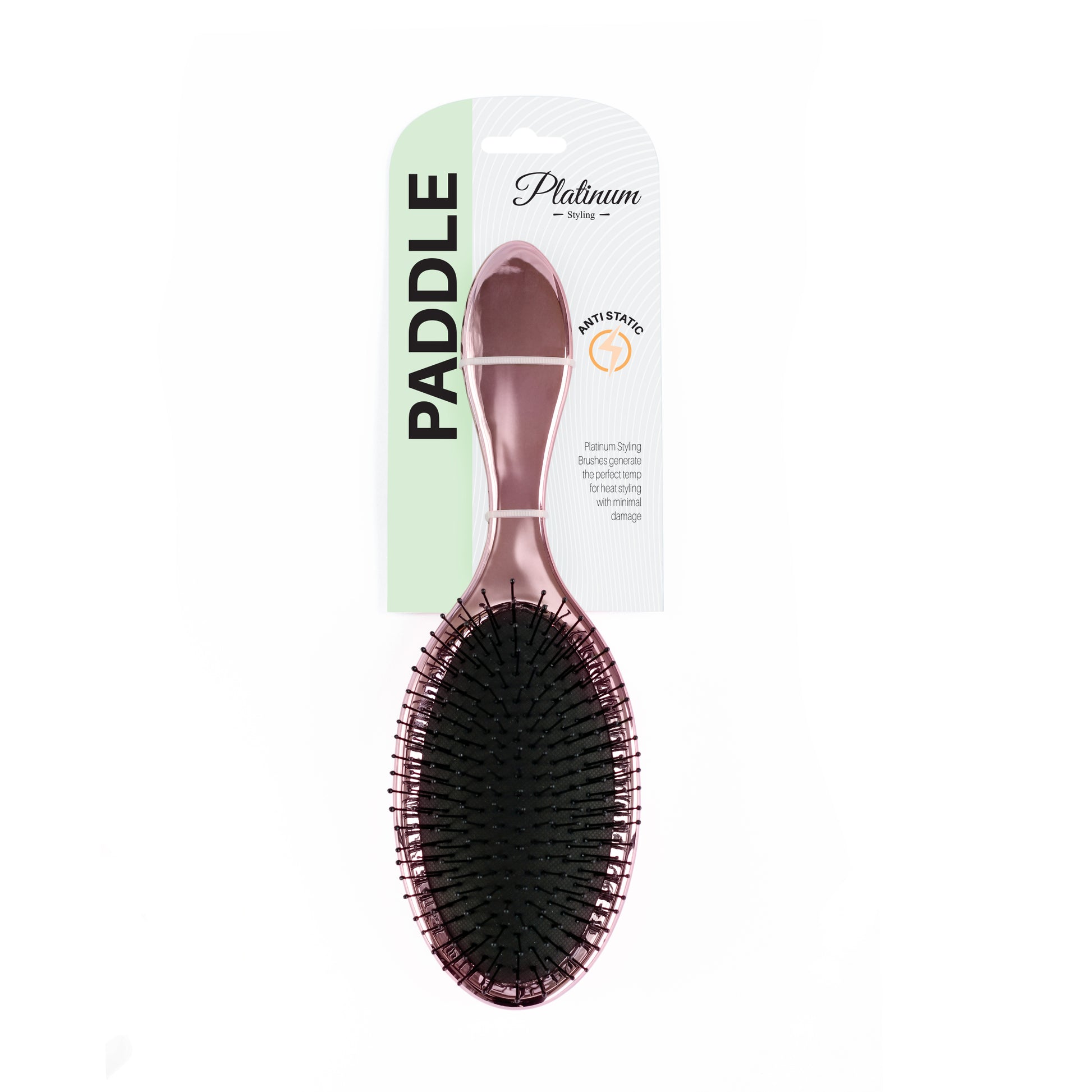 Stand out from the crowd with the Electro-plated pink Platinum Styling paddle brush.