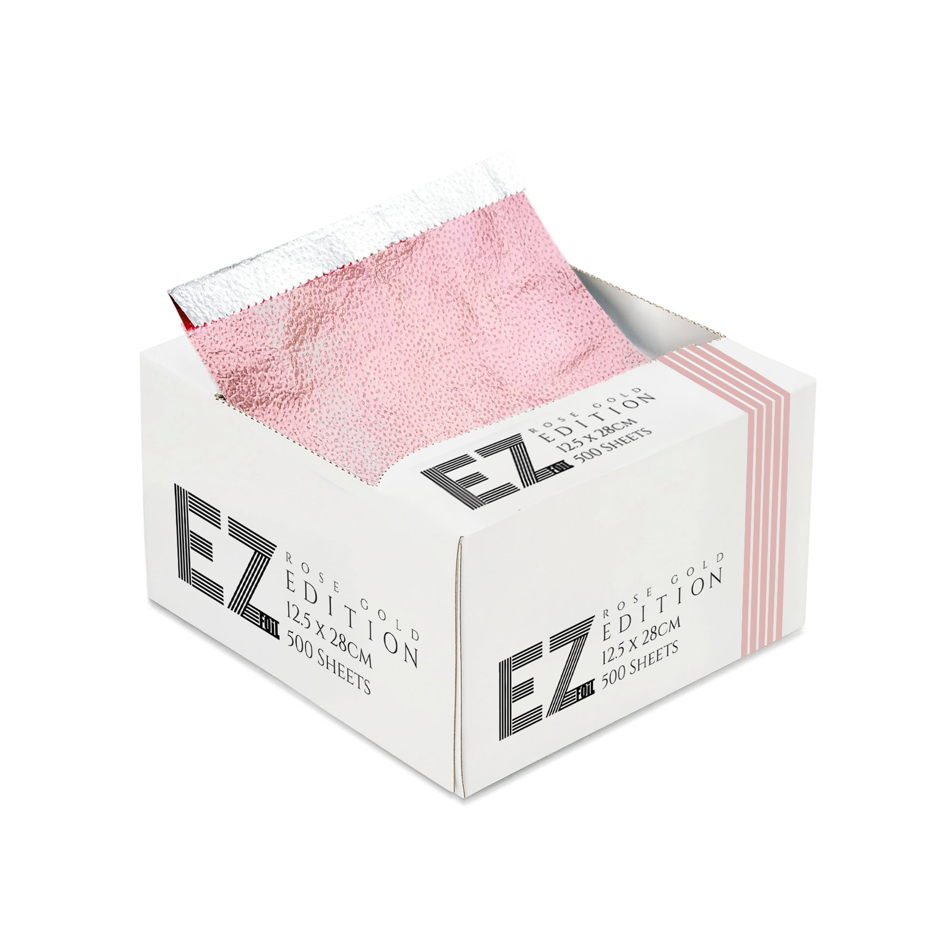 Everyone has been asking for it so now our best selling colour is available in the classic size. Add a touch of pastel to your salon with the new EZ Foil Rose Gold Classic Pop Up Foil. Each box contains 500 embossed, pre-cut sheets, which are easy to pull out of the box like a tissue. Each sheet is 12.5cm wide x 28cm in length and embossed with our signature design for grip. Our foil box also has lift up tabs underneath to help you reach your foil when it is coming to an end.